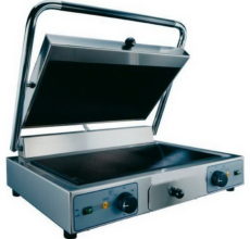Эта модель допускает нагрев и приготовление блюд даже при открытой крышке. Однако нагревательные элементы оборудованы сразу в двух поверхностях, поэтому прожарка продуктов протекает быстрее. Для более удобного использования в нижней части конструкции расположен ручной регулятор температуры.